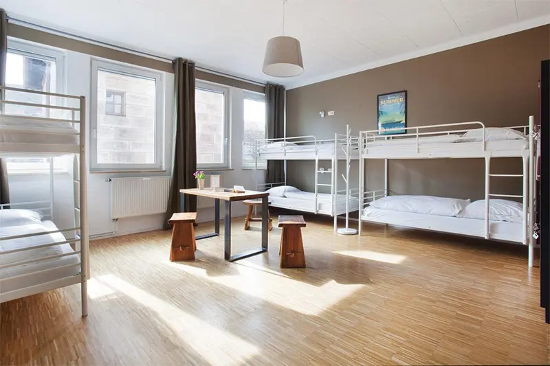 Ficamos no Five Reasons Hostel super pertinho da estação de trem e do ponto de ônibus da Flixbus (em torno de 10 min caminhando) e da saída de metrô. Se você vir do centro pode optar por vir por fora, não do lado da muralha que é meio escuro e fedido. O Hostel em Nuremberg é bem fácil de achar pois possui o nome pintado bem graaande na parede exterior e a abertura da porta é feita pela recepção ou por cartão. O prédio possui vários andares, mas não se preocupe se a sua mala for de rodinha pois há elevador.