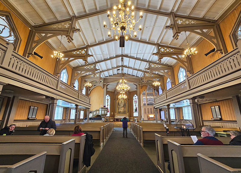 No centro de Tromsø também está a Tromsø domkirke (Catedral de Tromsø), uma grande igreja luterana de madeira em estilo revival gótico concluída em 1861 e ativa como igreja principal da cidade, conhecida por ser a única catedral protestante de madeira da Noruega. Não paga nada pra entrar e tive a sorte de ver um concerto de órgão por acaso!